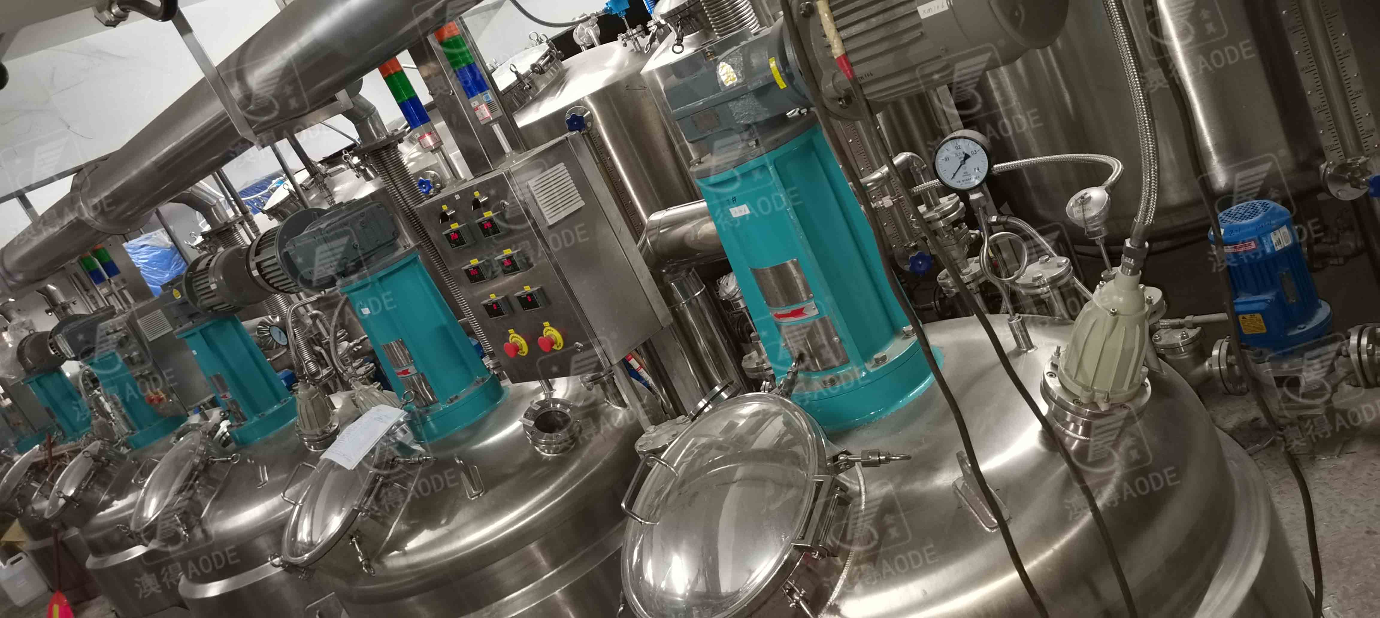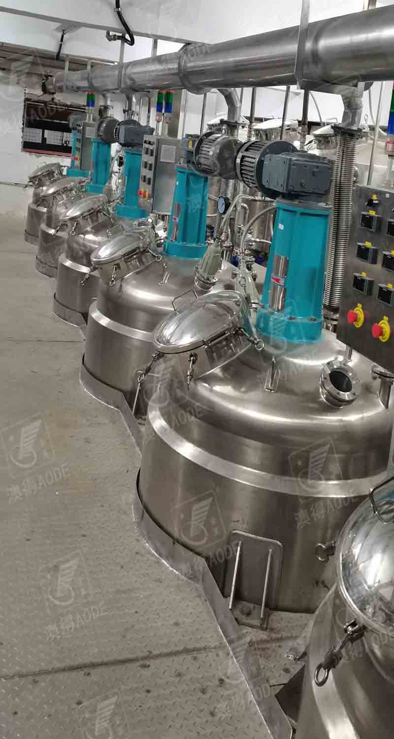 整套生產(chǎn)設備如下:加熱攪拌罐、冷卻攪拌罐、原料儲罐、冷水機、鍋爐、離心泵、氣動隔膜泵、過濾器、閥門、防爆電器、管道、鋼結構平臺、PLC控制系統(tǒng)。